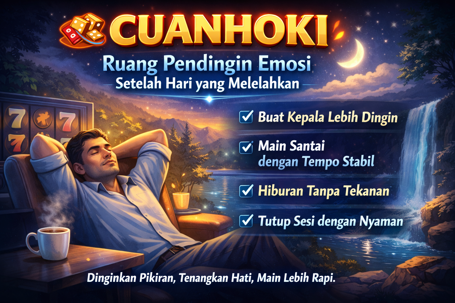 CUANHOKI membawa konsep “ruang pendingin emosi” setelah hari yang melelahkan. Intinya sederhana: kamu boleh cari hiburan, tetapi dengan cara yang lebih tertata. Kamu bukan masuk untuk membuktikan apa pun, bukan untuk mengejar hype, dan bukan untuk memaksa sesi panjang. Kamu masuk untuk menurunkan panas di kepala, menata ritme, dan kembali ke suasana yang lebih stabil.